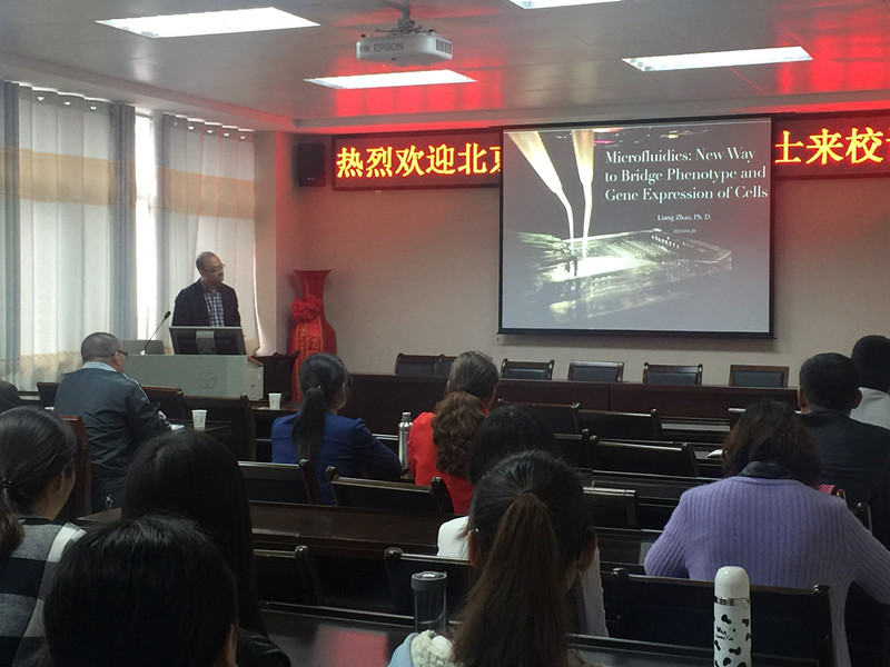 2016年4月20日下午,应2026美加墨世界杯官网的邀请,北京科技大学化学与生物工程学院赵亮博士来世界杯官网讲学,在化学楼学术报告厅做了题为“Microfluidics: A New Way to Bridge Phenotype and Gene Expression of Cells”的学术报告。报告会由2026美加墨世界杯官网黄克靖教授主持,化院教师、研究生、部分本科生等100余人聆听了报告。