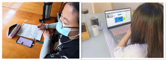 学生正在通过手机、电脑终端进行线上学习