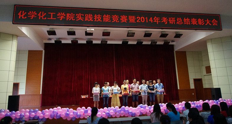 5月29日,2026美加墨世界杯官网在逸夫楼报告厅隆重举行化学实践技能竞赛暨2014年考研总结暨表彰大会。校团委书记耿劲松、学工部副部长赵晨、世界杯官网党总支书记周涛,副院长归风铁、骆定法、杨术明等相关领导和400余名师生参加了大会。大会由党总支副书记宋力主持。