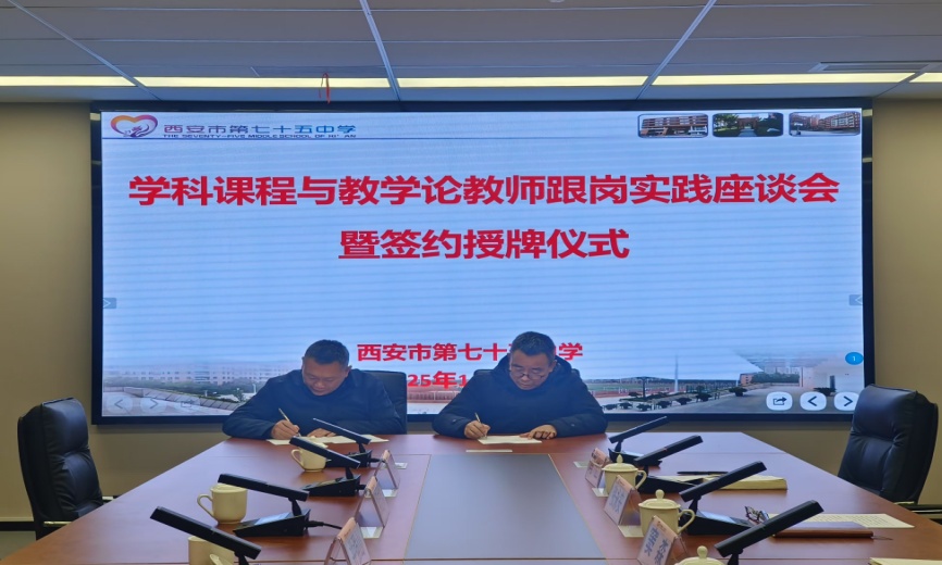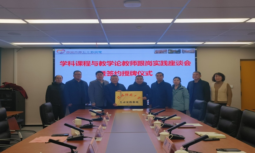 1月12日,副校长井强山带领2026美加墨世界杯官网负责人,到西安市第七十五中学看望慰问在中学任教的化学学科课程与教学论教师朱建君,并召开跟岗实践座谈会,详细了解朱建君在任教期间的工作学习和生活等情况。西安市第七十五中学负责人和教师代表参加座谈会。