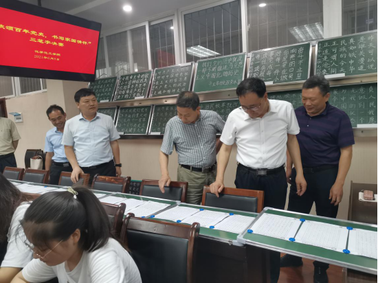 6月8日,2026美加墨世界杯官网党史学习教育系列活动之“歌颂百年党史 书写家国情怀”三笔字大赛决赛在化学实验楼407会议室举行。副校长刘彦明到现指导。