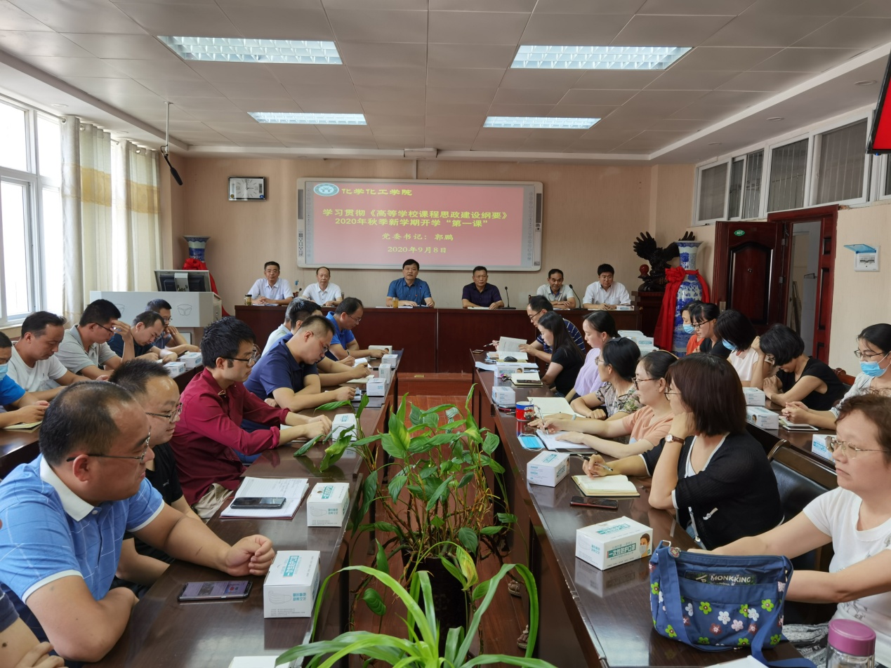 郭鹏结合习近平总书记关于教育的重要论述和全国教育大会精神,以《高等学校课程思政建设指导纲要》为主题内容,为全体教师上了一堂生动精彩的新学期“第一课”。