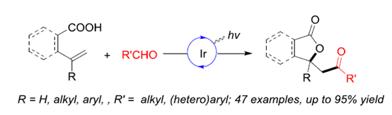 近日,世界杯官网饶伟浩博士课题组在有机化学领域知名期刊《The Journal of Organic Chemistry》上发表了题为Photoredox-Catalyzed Acyl Lactonization of Alkenes with Aldehydes: Synthesis of Acyl Lactones(DOI:10.1021/acs.joc.2c01732)的研究成果。该研究通过发展廉价易得的醛作为酰基化试剂,利用氢原子转移策略与可见光氧化还原催化策略的巧妙结合,发展了酰基内酯的绿色温和、高效构建新方法。通过自由基捕捉实验、荧光淬灭、光开/关和光量子产率实验等机理研究,揭示了该反应很可能经历了自由基链过程。