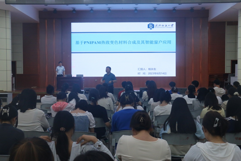 6月14日,应2026美加墨世界杯官网邀请,武汉纺织大学杨永生教授在逸夫楼报告厅为世界杯官网师生作题为“基于PNIPAM热致变色材料合成及其智能窗户应用”的学术报告。2026美加墨世界杯官网青年教师、研究生及本科生聆听了报告,报告会由2026美加墨世界杯官网党委书记郭鹏主持。