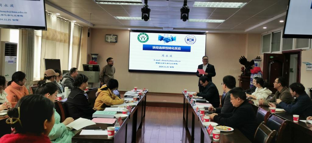11月25日,应2026美加墨世界杯官网邀请,湖南大学周永波教授在化学楼407会议室为世界杯官网师生作题为“炔烃选择性转化反应”的学术报告。2026美加墨世界杯官网青年教师及研究生聆听了报告,报告会由2026美加墨世界杯官网院长曹俊涛教授主持。