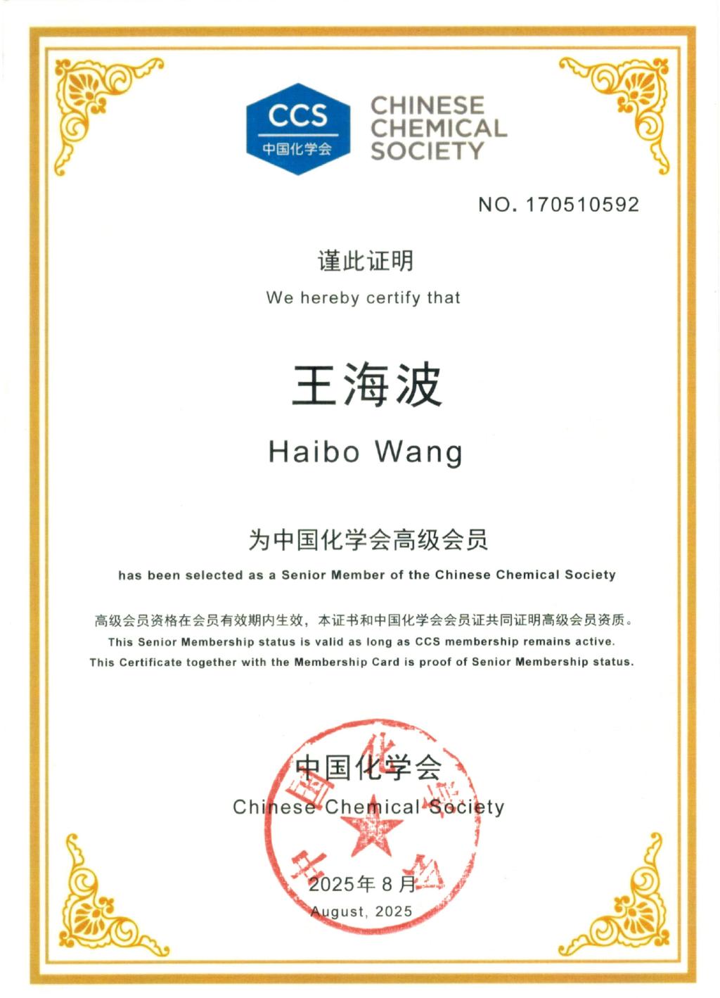 近日,中国化学会公布了新晋升为高级会员名单。世界杯官网2026美加墨世界杯官网王海波教授成功晋升成为高级会员。