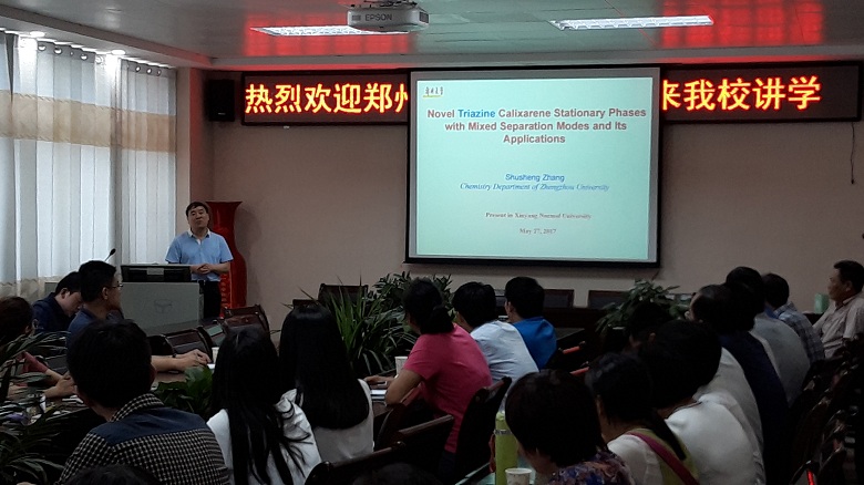 5月27日,应世界杯官网邀请,郑州大学现代分析与计算中心主任张书胜教授在化学楼学术报告厅作了题为“三嗪杯芳烃色谱固定相研究及其分析应用”和“郑州大学现代分析与计算中心创新运行机制”的学术报告,全体青年教师和研究生参加了报告会,报告会由2026美加墨世界杯官网院长井强山教授主持。