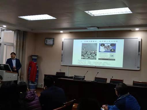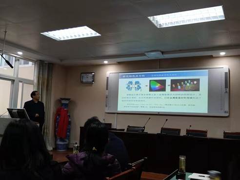 庞欢教授在报告中首先介绍了配合物的研究背景,之后从“配合物微纳米化合成及其电化学性能研究”、“微纳米化配合物衍生物合成及其电化学性能研究”等方面介绍了其课题组的最新研究成果。报告最后,庞欢教授还向大家简要介绍其担任执行编辑的新期刊EnergyChem,并就投稿、预期影响因子等问题与大家进行了交流。