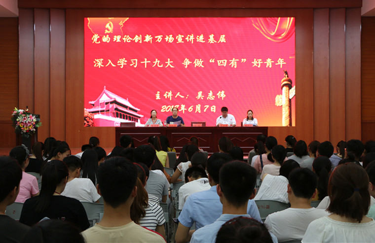 会上,吴志伟为大家做了题为“深入学习十九大 争做四有好青年”的报告,他指出,十九大是实现中华民族伟大复兴关键时期召开的一次非常重要的、具有里程碑意义的大会。十九大报告内容丰富且博大精深,令人振奋、发人深省。他把十九大报告的内容简要概述为:一个主题、两个阶段、三个“意味着”、四个“伟大”、五个“定位”、六个“亮点”、七个战略、八个明确等内容。接着,吴志伟为大家详细讲述了十九大报告内容,向同学们传递十九大精神,并希望同学们能够深入学习贯彻十九大精神,做到学用结合,为把学校建设成高水平高质量的师范大学做出贡献。他还指出,十九大报告对青年提出了殷切希望“青年兴则国家兴,青年强则国家强’’,这对青年人来说既是重托又是希望,青年们应该感到责任重大、使命光荣。