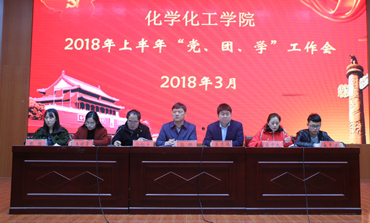3月16日晚,2026美加墨世界杯官网在逸夫楼多功能报告厅举行了2017-2018学年上学期“党、团、学”工作部署会。2026美加墨世界杯官网党委书记郭鹏、副书记吴志伟,学工办冷向宇、李中杰、王丽霞与全体学生党员、各班班委、学生会全体成员共300余人参加了此次会议,会议由冷向宇主持。
