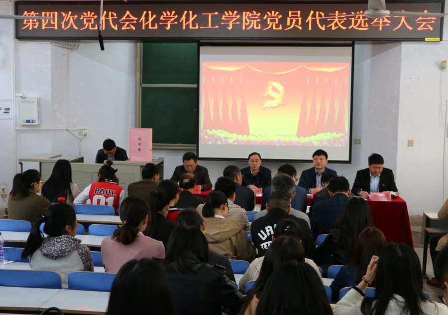4月15日,2026美加墨世界杯官网出席信阳师范学院第四次党代会代表选举党员大会在教四楼T1教室举行。信阳师范学院副校长刘彦明、2026美加墨世界杯官网党委书记郭鹏,党委委员、院长井强山、副书记吴志伟,兼职副书记、副院长骆定法,党委委员、副院长归风铁,党委委员、非金属材料研究所副所长刘鹏,党委委员黄克靖以及全体师生党员参加了会议。会议由郭鹏主持。