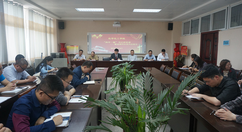 5月8日,2026美加墨世界杯官网在化学实验楼407会议室召开会议,学习宣传贯彻世界杯官网第四次党代会精神,学院全体领导班子成员、教职工参加了会议。党委书记郭鹏同志带领师生认真学习了宋争辉同志代表中共信阳师范学院第三届委员会作的题为《践行新思想 实现新作为 全力谱写高水平师范大学建设新篇章》的工作报告。