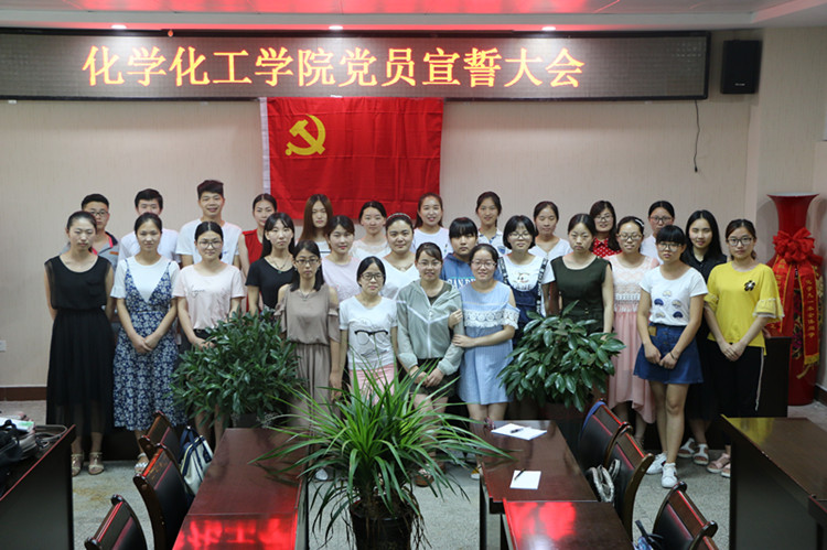 在化院第三学生党支部陈政华同学的领誓下,三十余名新发展的学生党员进行了入党宣誓,同学们庄严地举起右手,面对鲜艳的党旗郑重宣誓,短短一百多字的誓词是他们入党后对党的第一个承诺。宣誓后,预备党员代表赵苗苗发言,她承诺在今后的工作中,将把入党誓词作为自己毕生的信念、终身的追求,决不辜负党组织的期望。入党积极分子陈梦茹表示要向新老党员学习,严格要求自己,时刻牢记党“全心全意为人民服务”的宗旨,听从党的教诲、服从党的决议、遵守党的章程,争取早日加入党组织。最后郭鹏对新党员们表示热烈的祝贺和欢迎,并对大家提出了两点希望和要求:第一,要认真参加组织生活会、两学一做等学习活动,充分发挥学生公寓党建工作站的作用,在学习工作之余,经常开展基层党组织的特色活动,让党员受教育、长才干,为身边的同学树标杆。;第二,组织上入党之后,思想上也要尽快入党,充分发挥党员的先锋模范带头作用。最后,全体党员合影留念。
