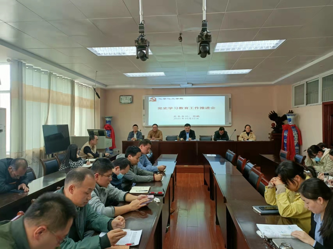 10月12日下午,世界杯官网在化学实验楼407会议室召开党史学习教育工作专题推进会,分党委委员、专职组织员、各支部书记参加会议。会议由院党委书记郭鹏主持。