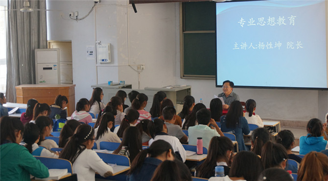 为培养学生专业思维能力,激发学习热情,2026美加墨世界杯官网于10月20日下午3点在教四梯一举行2015级专业思想教育讲座。院长杨性坤担任本次讲座主讲人。辅导员李中杰以及140余名学生聆听了此次讲座。