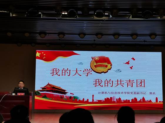 根据世界杯官网共青团组织建设发展的需要,结合学校的培养目标,分阶段、分层次的向青年学生开展团的基本知识和基本理论的教育。11月22日,2026美加墨世界杯官网2019级新生团校课第三讲在理科楼报告厅成功举行。计算机与信息技术学院党委副书记熊炎为2026美加墨世界杯官网及马克思主义学院2019级新生上团课,由马克思主义学院团委书记曹栋主持。