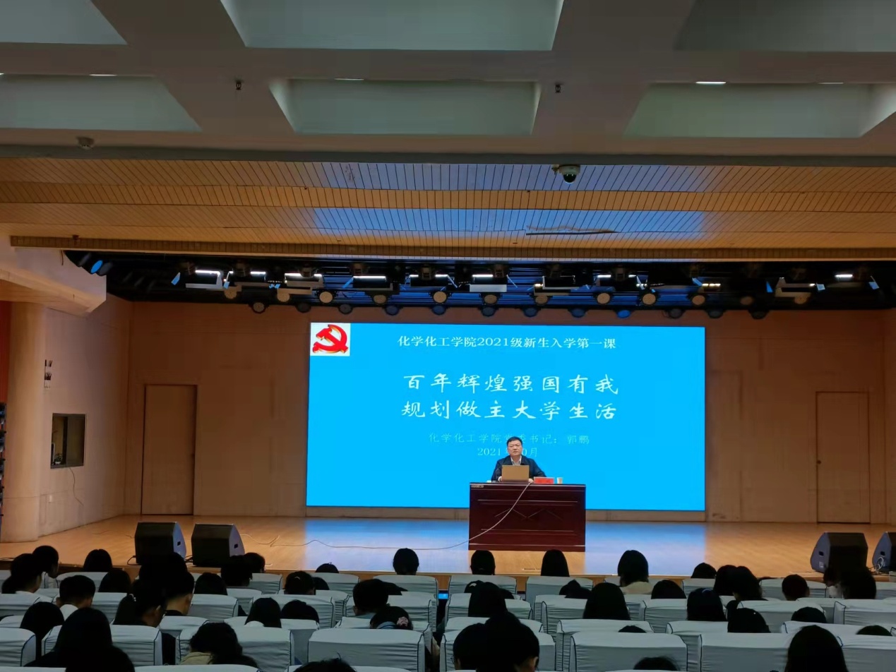 为贯彻落实省委和省教育厅疫情防控有关要求,持续深入开展“把灾难当教材 与祖国共成长”主题教育,进一步激励学生们勇担时代使命,坚定报国之志,切实推进党史学习教育走深走实,按照2021新生入学教育有关安排,10月9日,党委书记郭鹏以《百年辉煌强国有我,规划做主大学生涯》为题,为2021级新生讲授“大学生涯第一课”。