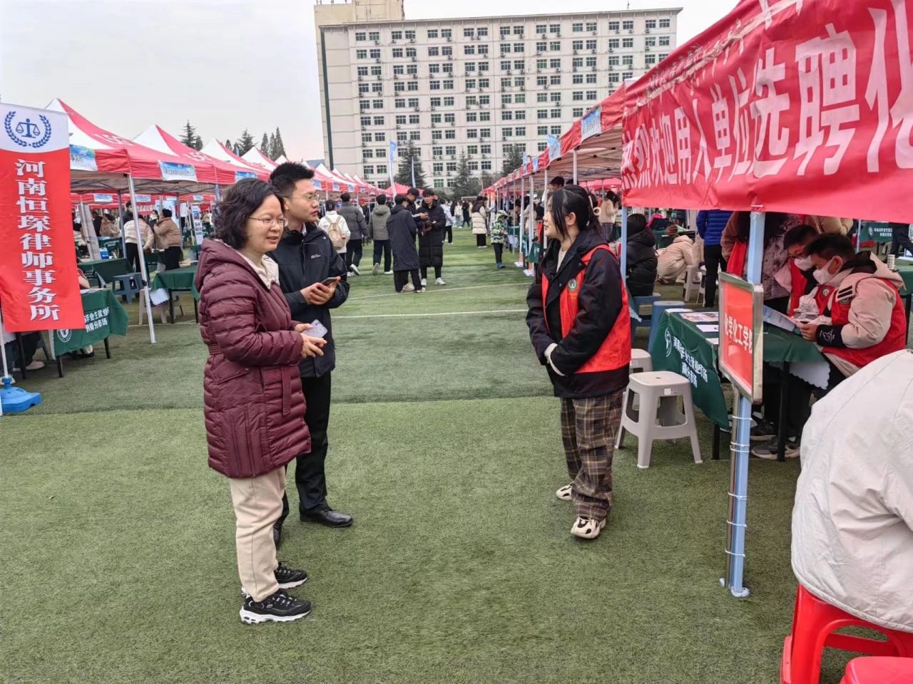 2026美加墨世界杯官网党委书记郭鹏、副书记曲剧、就业秘书严赫莅临现场并亲切关心毕业生的就业情况,询问学生的就业意向,为学生精准推荐就业岗位;与用人单位交流,了解用人需求,共同讨论学生在校培养与未来发展。