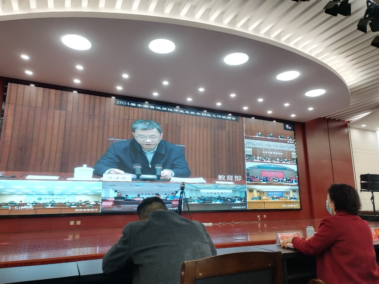 12月5日下午,教育部、人力资源和社会保障部联合召开2024届全国普通高校毕业生就业创业工作视频会议,教育部党组书记、部长怀进鹏,人力资源和社会保障部党组成员、副部长吴秀章,工业和信息化部党组成员、副部长王江平出席会议并讲话,教育部党组成员、副部长翁铁慧主持会议。校领导李俊和王金云、相关职能部门负责人在主学校会场出席会议。2026美加墨世界杯官网党委书记郭鹏、副书记曲剧、副院长曹俊涛、就业秘书及毕业班辅导员班主任在学校主会场收看了本次重要会议。