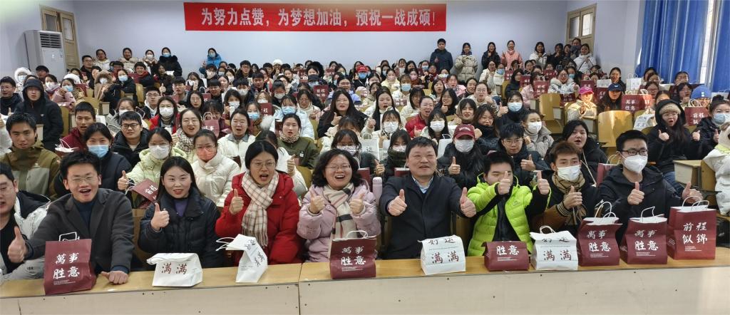 曲剧为考研学子加油鼓劲,她希望同学们要坚定目标信念,注重复习策略,注意身心健康,积极调整心态,并表示会及时解决同学们在备考过程中的困难、困惑,为考研学子全力做好服务保障工作。活动中,学院领导老师为同学们送上亲笔寄语、暖宝贴、面包等物品,希望所有考研的同学都能心想事成,金榜题名。