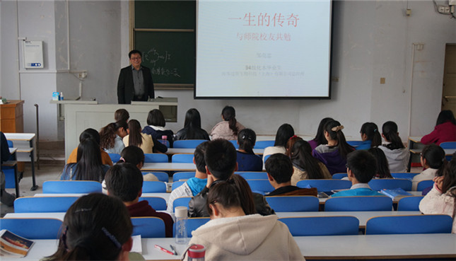 本次讲座在轻松愉快的氛围中开始,以交流的形式展开。首先,邹亮忠就如何认识自己、如何认识世界以及如何完成自己的使命与同学们进行了深入的探讨。他以故事的形式将人生经历的阶段娓娓道来。告诫同学们要注重细节,从小事做起,善于接受批评,学会自我管理,自我激励,树立正确的人生观、价值观及世界观,培养团队协作意识,并设立自己的人生目标。接着,他提出“一切皆为资源”的观点,并指出每个人自己就是最大的资源,只有善于利用自身资源方能有所成就。随后,邹亮忠向同学们分析了目前经济与就业形式,指出了大学生创业的优缺点,同时总结出适合创业的人群特点,建议同学们去做投资小、收益快、风险低并且适合自身专业的项目,他建议同学们在寻求合作伙伴时寻求创新型人才,如此方能使企业得到更好的发展。最后,邹亮忠结合自身经历向同学们传授宝贵经验,他提出创业所必需的三大基本要素即健康的身体、抗压的能力和动手的能力。他深入到同学们之中对同学们提出的问题一一做了详尽的解答,并用马云语录与同学们共勉。邹亮忠亲切随和的交流方式受到同学们的欢迎,本次讲座于两个小时后在同学们热烈的掌声中圆满结束。