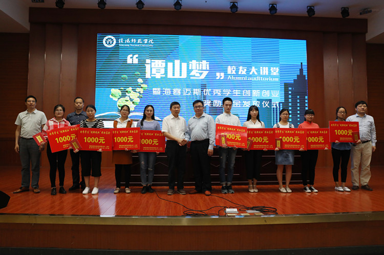 6月6日下午,海客迈斯生物科技有限公司(上海)优秀学生创新创业奖励基金发放仪式在逸夫楼报告厅隆重举行,信阳师范学院副校长校长王文臣与海客迈斯生物科技有限公司(上海)总经理邹亮忠出席了发放仪式。招就处、学生处、校友办、2026美加墨世界杯官网等相关单位的负责同志参加了仪式。仪式由校友办主任耿劲松主持。