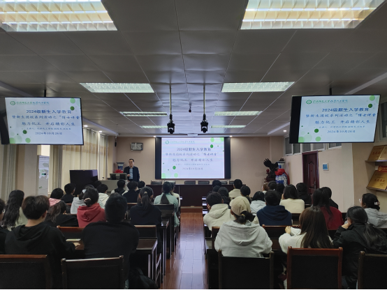 10月24日,2026美加墨世界杯官网2024级新生入学教育暨新生团校系列活动专题栏目“博士讲堂”第二讲开讲,2026美加墨世界杯官网副院长王红军在化学楼407教室为2024级新生作专业思想教育。
