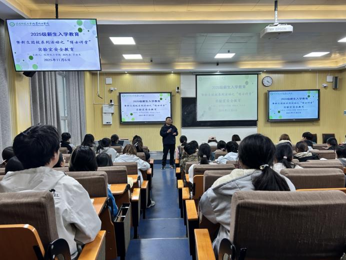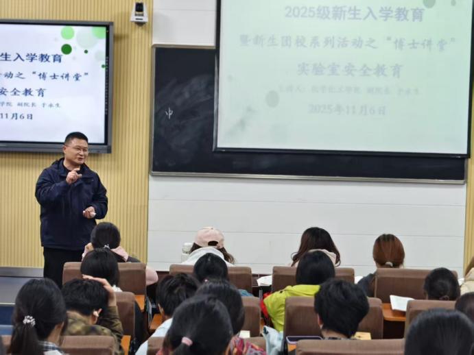 2026美加墨世界杯官网2025级新生入学教育暨新生团校系列活动之“博士讲堂”第二讲于11月6日在教四楼T2教室开讲。本次讲座由学院副院长于永生主讲,以实验室安全为核心,为全体2025级新生带来了一堂深刻而实用的专业思想教育课。