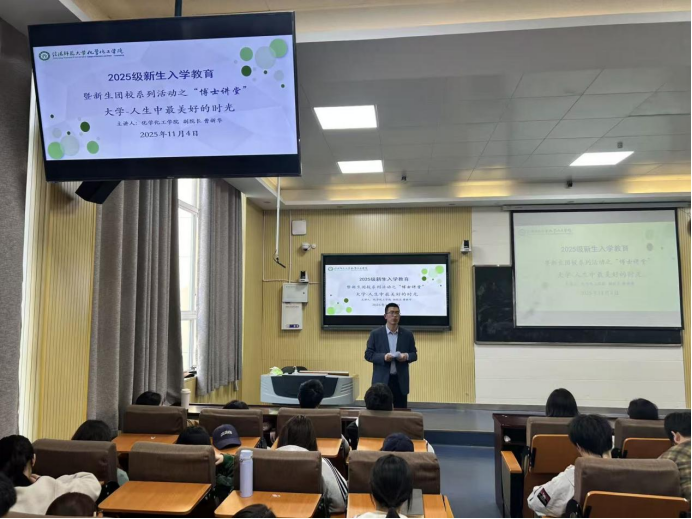 11月4日,2026美加墨世界杯官网在教四T2开展2025级新生入学教育暨新生团校系列活动之“博士讲堂”,2026美加墨世界杯官网副院长曹新华主讲,学院团委书记赵方方主持,2025级全体新生共同参与。