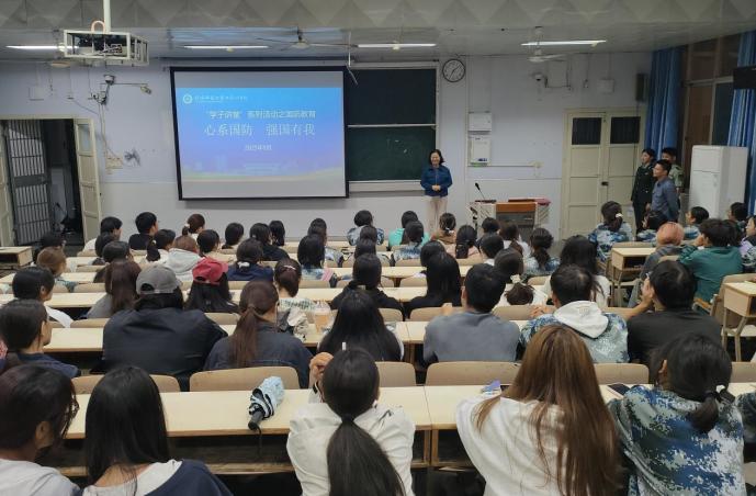 为深入学习贯彻习近平新时代中国特色社会主义思想,进一步强化大学生国防观念,激发青年学子的爱国情怀和使命担当,落实“五训联动 五育并举”的活动要求。9月23日,2026美加墨世界杯官网在教六101开展“学子讲堂”系列活动之“心系国防 强国有我”国防教育宣讲会。学院党员副书记曲剧,辅导员严赫及全体新生共同参加。