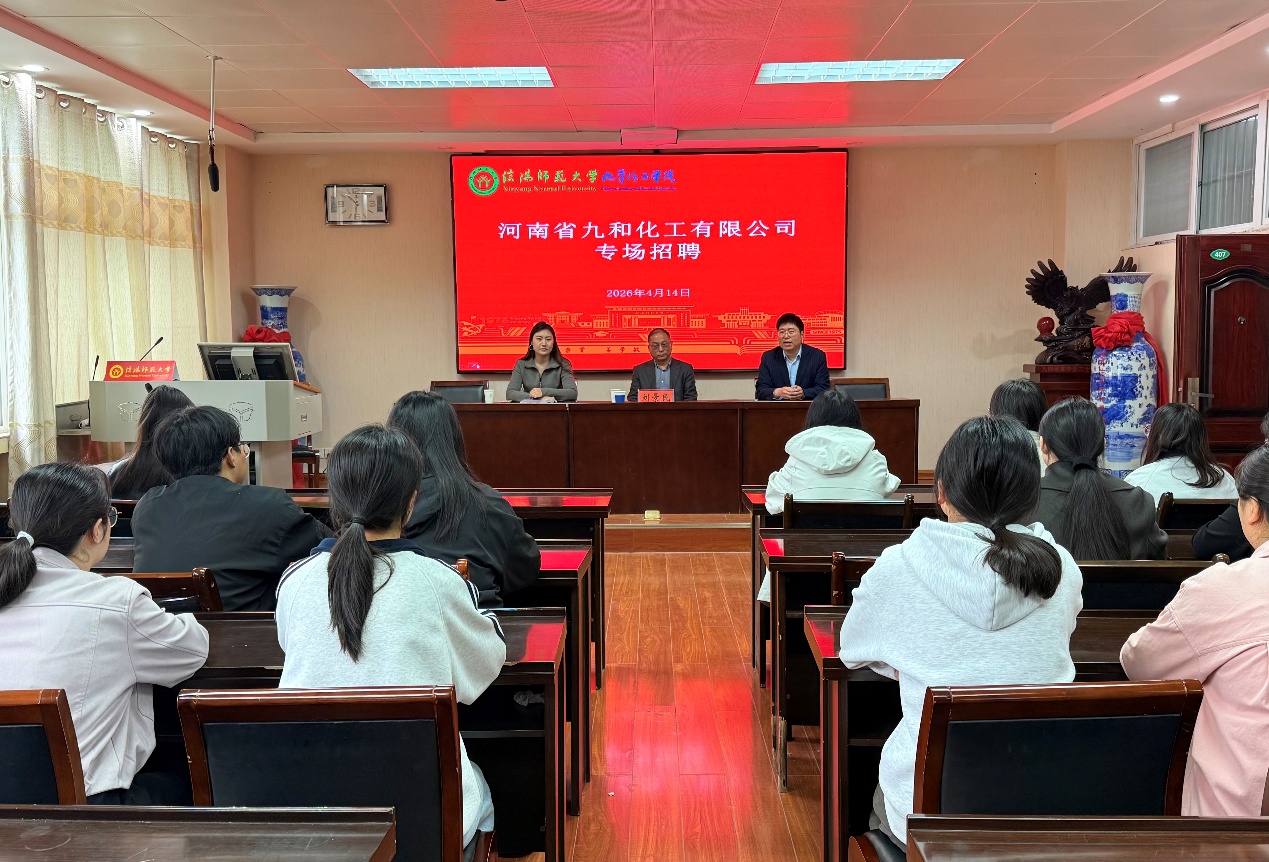 为精准搭建毕业生与优质企业双向对接平台,4月14日,河南省九和化工有限公司在化学楼407会议室举办专场招聘会。公司总经理刘景民受邀到场开展专题宣讲,活动由学院党委书记吴志伟主持,世界杯官网相关专业部分毕业生参加。