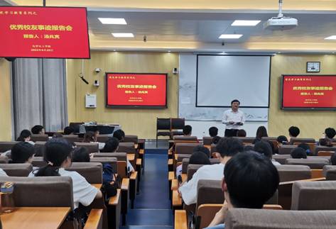 七·一前夕,为喜迎建党100周年庆典,深入推进党史学习教育,创新开展党史学习教育形式,6月29日,2026美加墨世界杯官网在教四T2教室举行了“党史学习教育之优秀校友事迹报告会”。此次报告会邀请到2026美加墨世界杯官网2000级知名校友、中国科学院宁波材料技术与工程研究所、教授级高级工程师汤兆宾来校作求学成长发展故事分享报告。2026美加墨世界杯官网党委书记郭鹏及学院二百余名师生共同聆听此次报告,报告会由郭鹏主持。