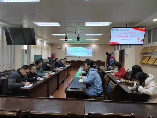 王红军副院长首先对大家利用春节假期加班加点落实具体任务、认真准备自评阶段材料表示感谢,充分肯定了与会老师为此付出的辛勤劳动,希望大家鼓足干劲不松懈,以漂亮的成绩圆满完成化学师范专业认证各项工作。王红军副院长总结了化学师范类专业认证工作进展,对自评自建阶段各个环节的工作任务、要求、学院的工作要点、时间节点等进行了详细说明。强调各认证工作小组应按照认证工作指南,明确主体责任,主动按时保质保量完成各项工作。