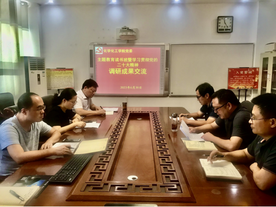 6月30日上午,2026美加墨世界杯官网在化学楼313会议室开展学习贯彻习近平新时代中国特色社会主义思想主题教育调研成果交流会。学院全体领导班子进行研讨总结,由党委书记郭鹏主持。