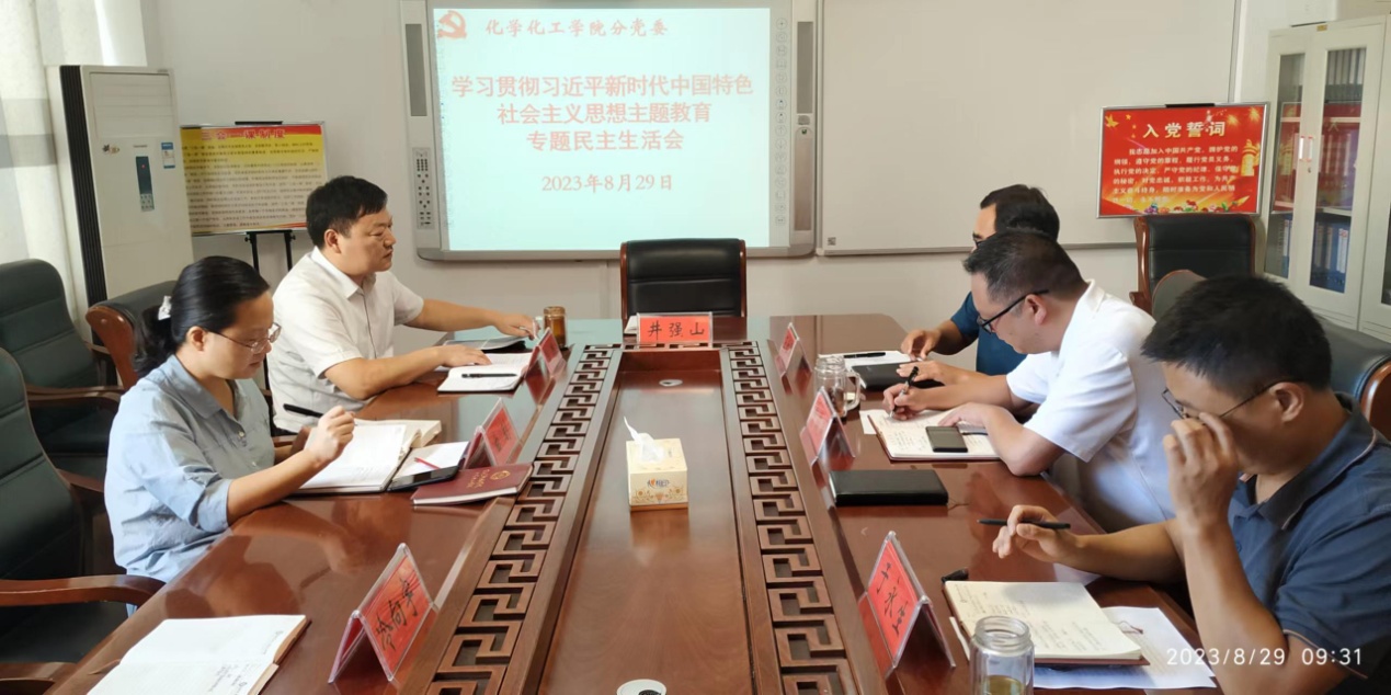 2023年8月29日,2026美加墨世界杯官网党委在化学实验楼313“党员之家”召开学习贯彻习近平新时代中国特色社会主义思想主题教育专题民主生活会。2026美加墨世界杯官网党委全体处级干部参加民主生活会,会议由学院党委书记郭鹏主持。