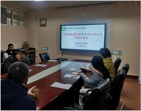 本次开题汇报会分3个小组进行。第一组为物理化学专业,邀请了井强山、田永尚、王进双、常雪萍、张星、陈明等专家导师参加报告会;第二组为分析化学专业,邀请了刘彦明、曹俊涛、甘甜、王海波、胡雪波、许靖等专家导师参加报告会;第三组为无机和有机化学专业,邀请了黄淮学院李荣强、张爱江、喻淼、胡鹏、魏雨、徐启杰、张斌等校外联合培养专家导师,樊阳、曹新华、马献涛、裴晓燕、王艳宁等校内专家导师参加报告会。