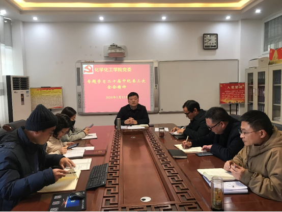 会议专题传达学习研讨习近平总书记在二十届中央纪委三次全会上的重要讲话精神。郭鹏指出,习近平总书记在二十届中央纪委三次全会上的重要讲话,深刻阐述党的自我革命的重要思想,科学回答我们党为什么要自我革命、为什么能自我革命、怎样推进自我革命等重大问题,是新时代新征程深入推进全面从严治党、党风廉政建设和反腐败斗争的根本遵循。会议强调,要深入学习领会习近平总书记的重要讲话精神,牢牢把握“九个以”的实践要求,强化政治监督、加强纪律建设、强化责任落实。要牢牢把握正确政治方向,始终在思想上政治上行动上同以习近平同志为核心的党中央保持高度一致,充分认识反腐败斗争的严峻复杂形势,以实际行动坚定拥护“两个确立”、坚决做到“两个维护”。学院党委中心组成员要带头指导、参与所联系的各党支部、系室党员干部师生第一时间认真开展学习。