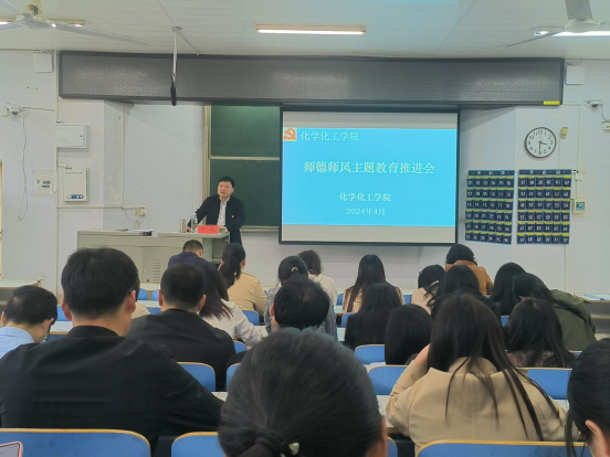4月16日下午,2026美加墨世界杯官网在教4梯1举行弘扬教育家精神暨师德师风主题教育推进会。会议由世界杯官网党委书记、工会主席郭鹏主讲,全体教师、学生代表参加会议。