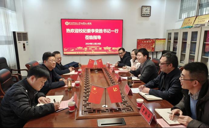 12月19日,校纪委书记李荣胜在校纪委副书记兼目标管理与督查办公室主任周经兵陪同下,到2026美加墨世界杯官网调研,指导学院纪检监察工作和目标考核工作,并举行座谈会。2026美加墨世界杯官网党委书记吴志伟、院长曹俊涛和班子成员参加座谈会。