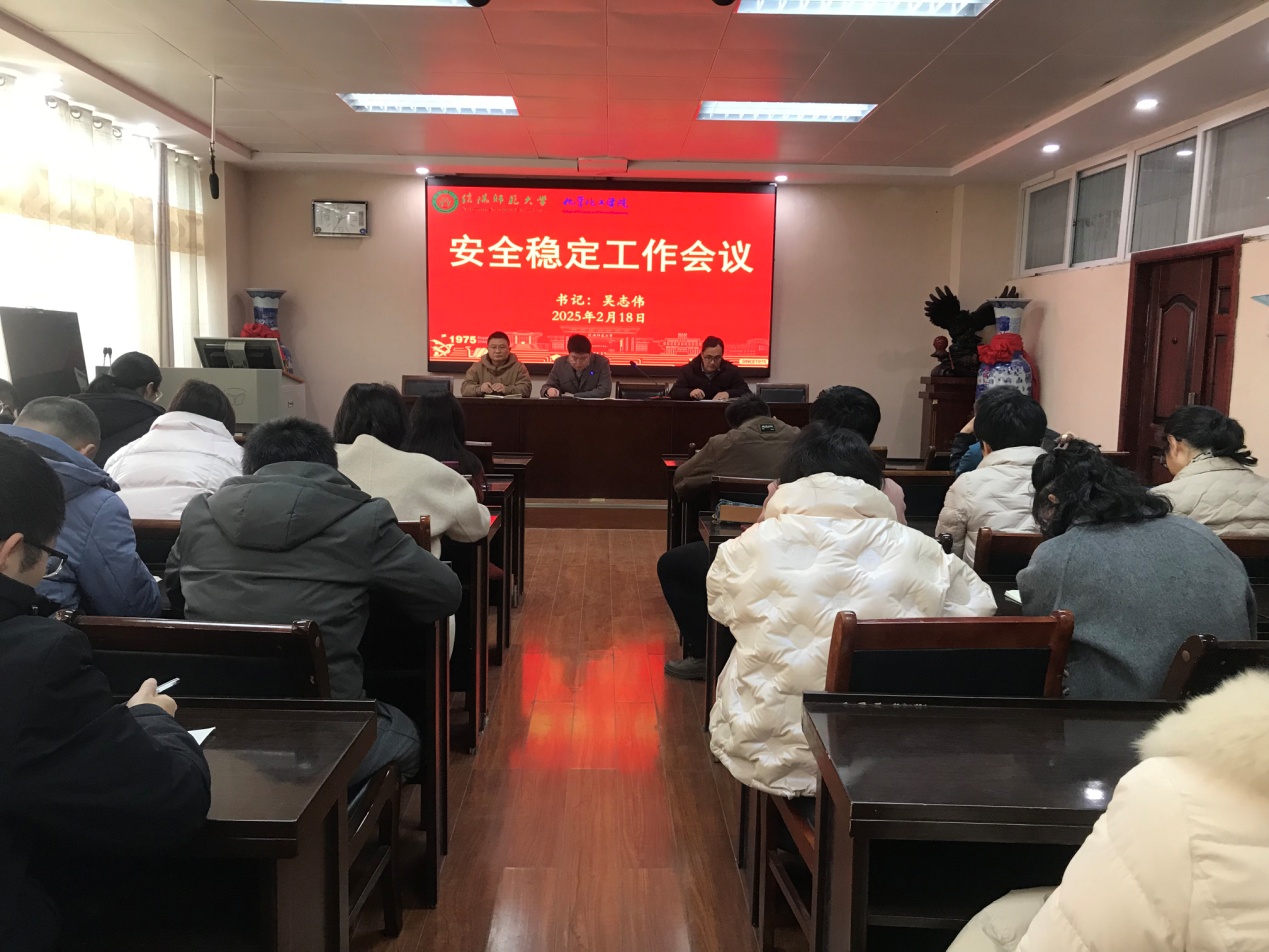 吴志伟传达了学校党委书记王文鹏在2025年春季开学中层干部大会暨安全稳定工作会议上的讲话要点。他要求,认真贯彻落实上级关于安全稳定工作的有关要求,围绕政治安全、消防安全、心理健康安全、网络安全、危化品安全、食品安全、交通安全、回应师生诉求、加强防控体系建设等方面,开展安全隐患排查整改,提升应急处突能力、完善体制机制、强化责任追究,全力维护好校园安定和谐的育人环境。