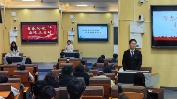宣讲会上,三位奖学金标兵分别以“青春恰似火,扬帆正当时”、“进取点点星铺路,步履稳踏自成长”、“青春向党,奋进正当时”为主题,分享了个人在学习、科研、实践以及入党过程中的成长经历和感悟。龙光原同学讲述了自己在大学期间通过不懈努力取得优异学习成绩,并积极参与科研项目的经历,展现了新时代青年的奋斗精神;刘亚丽同学从自身成长经历出发,分享了她在学习中遇到的困难以及如何克服困难、不断进取的过程,她的故事激励着在场的每一位同学;马锦灿结合自己参加的比赛和社会实践活动,展现了勇于探索、积极进取的精神风貌。三位标兵的宣讲内容丰富、生动感人,赢得了同学们的阵阵掌声。