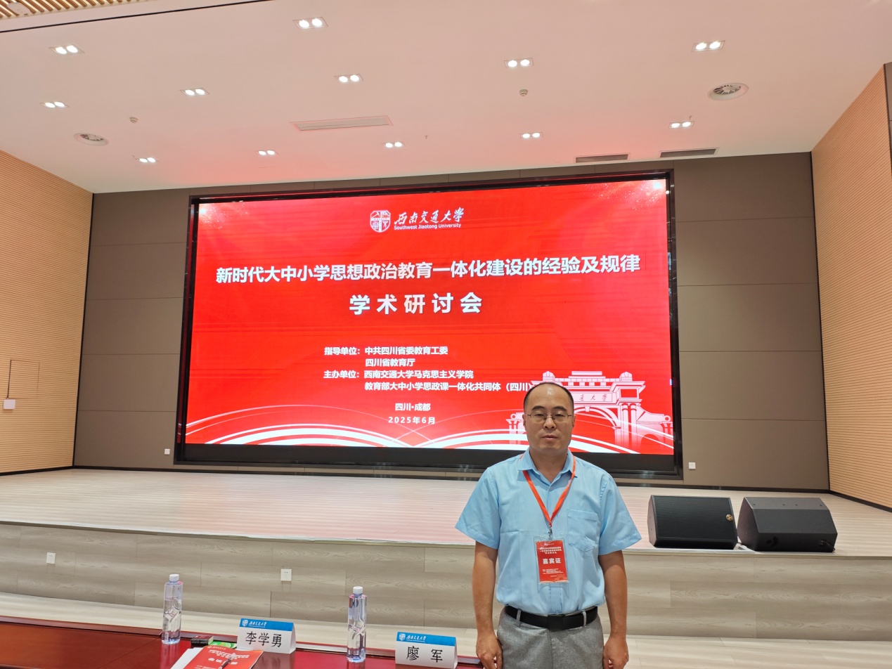 2025年6月14日,“新时代大中小学思想政治教育一体化建设的经验及规律”学术研讨会在西南交通大学犀浦校区双一流会议中心隆重举行。世界杯官网辅导员冷向宇博士向大会提交了论文《大别山红色文化资源助力思政课一体化建设探赜》,被会议论文集收录,并在学术论坛进行交流。