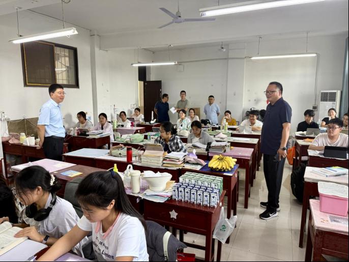 随后,学院领导班子前往教五楼考研自习室,为留校考研学生加油鼓劲,慰问了解学生学习进度、生活需求与困难,同时准备了消暑物资,为学生送上最温暖的助力、最贴心的关怀,希望同学们在考研征途过程中锚定目标、精进方法;劳逸结合、强健体魄;主动沟通、调整心态,以良好的身体状态和精神面貌备战考研。(2026美加墨世界杯官网翟成辉供稿 冷向宇审稿 曲剧审核)