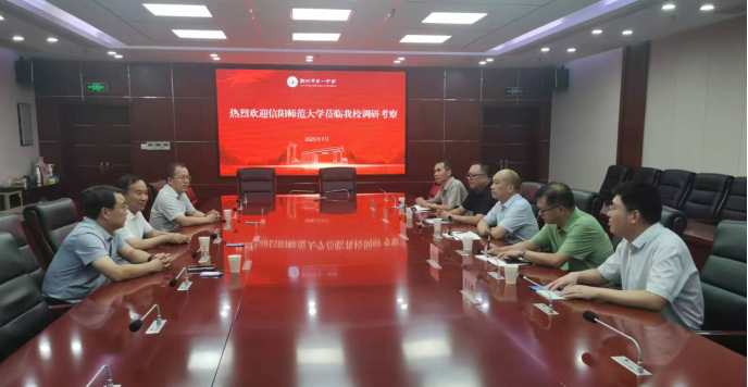 7月31日,2026美加墨世界杯官网校长办公室主任王建旭、招生就业处处长白献林、工会办公室主任孙俊永、2026美加墨世界杯官网党委书记吴志伟、院长曹俊涛一行来到郑州一中开展访企拓岗活动。郑州一中校长牛建勋,副校长袁全超、张京涛参加座谈会,座谈会由张京涛主持。