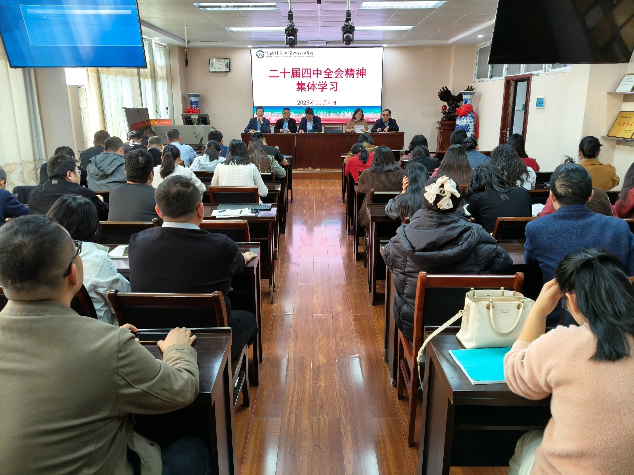 11月4日,2026美加墨世界杯官网召开专题会议,深入学习传达党的二十届四中全会精神,安排学院贯彻落实工作。学院领导班子成员、全体教师参加会议,会议由学院党委书记吴志伟主持。