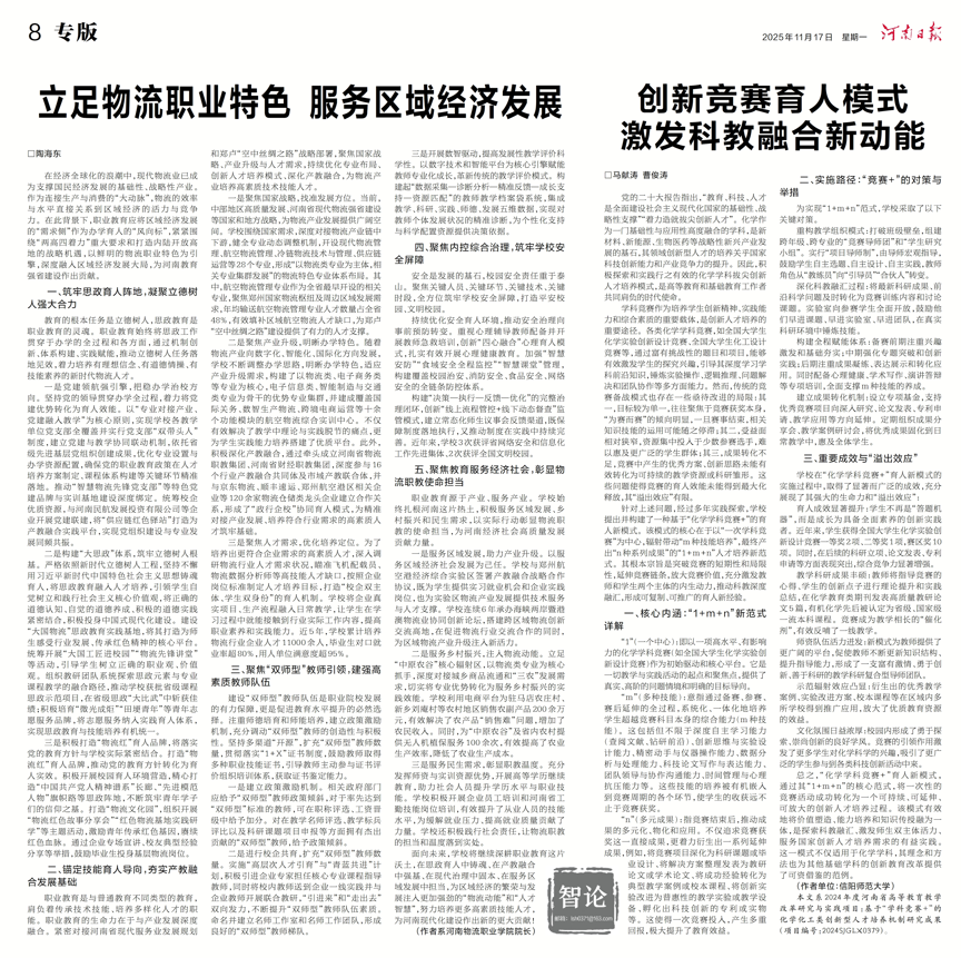 2025年11月17日,《河南日报》以《创新竞赛育人模式 激发科教融合新动能》为题,在第08版专题报道世界杯官网马献涛博士、曹俊涛教授团队的最新教研成果(报道链接:https://dzb.henandaily.cn/html5/2025-11/17/content_17_1767213.htm?curr=),充分彰显世界杯官网在基础学科创新人才培养领域的探索成效与示范价值。
