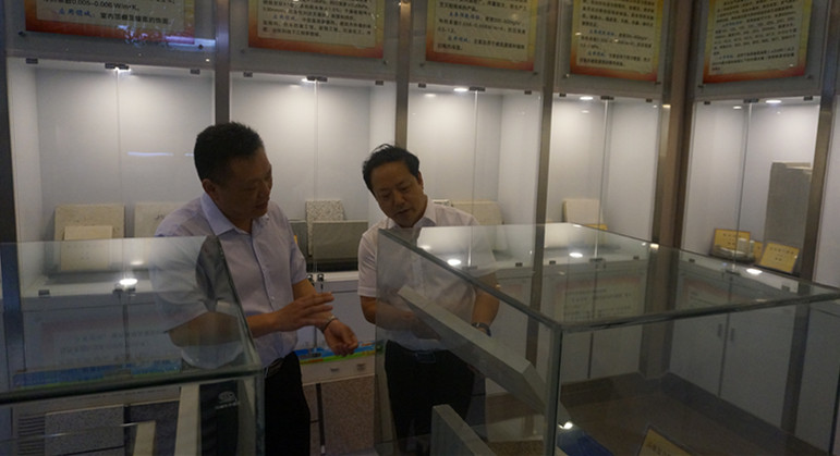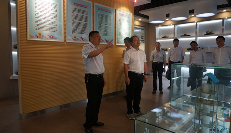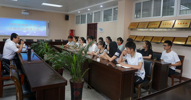 周光明在化院领导班子的陪同下参观了信阳市非金属矿物展馆,井强山为专家详细介绍了世界杯官网产学研一体化教学成果。随后专家一行走进各个实验室,考察了实验室设备、使用及对学生的开放情况,对世界杯官网硬件设施、平台建设给予了积极评价,并且提出改进意见。