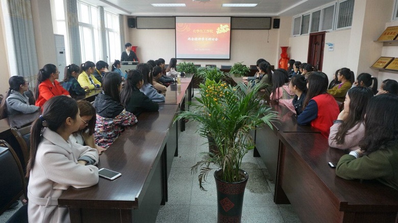认真学习两会精神,共同构建和谐校园。为了深刻领会“两会”精神。3月10日下午,2026美加墨世界杯官网于化学实验楼407会议室召开两会精神学习研讨会。50余名同学参加了此次研讨会。辅导员王丽霞老师莅临现场指导学习。
