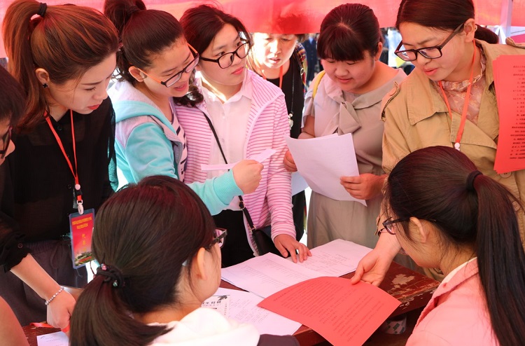 招聘现场,人来人往,秩序井然。用人单位通过发放宣传页,张贴海报等形式向毕业生展示单位规模、人文地理环境及薪资待遇等方面的信息。大规模的招聘需求,用人单位的精心准备,引来大批毕业生参与其中。毕业生详细向用人单位提出问题,用人单位耐心的回答大家关于招聘要求、薪资待遇等方面的提问。招聘会现场,世界杯官网领导老师与相关招聘单位进行详细交谈,我们的志愿者也热心帮助用人单位及毕业生做好服务。
