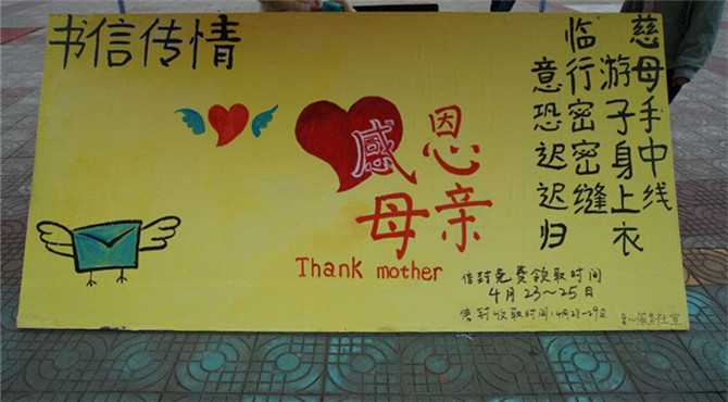 “羊有跪哺之恩,鸦有反哺之义。”母爱如光,母爱如歌。本次活动的顺利举行不仅让同学们更加深刻的了解母亲节的含义,还发扬了几千年的传统美德。传递孩子与父母之间浓浓的亲情,邮寄了孩子对父母感恩之心。